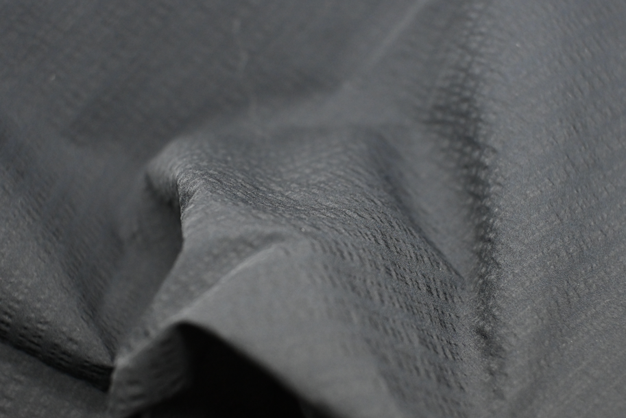 面料属性:100% 涤纶材质,克重 95GSM,采用独特横条不规则泡泡工艺,是兼具设计感与实用性的创新面料。
