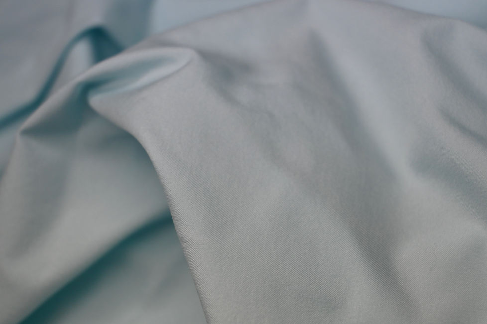 视觉表现:布面呈清新浅色调,纹理细腻平整,半光质感赋予其柔和光泽,轻薄特性使其垂坠自然,视觉上尽显简约雅致的春夏风格。