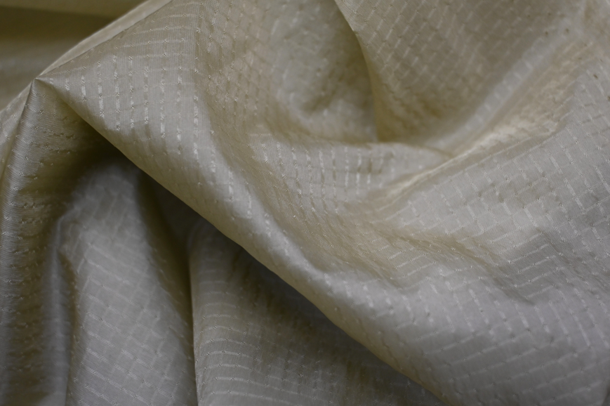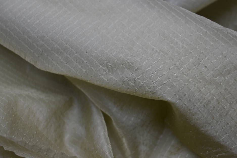 视觉表现:布面呈现特色三线格子纹理,有光质感赋予其柔和光泽,格子设计极具时尚感,轻量化特性使其垂坠灵动,视觉上尽显潮流雅致风格。