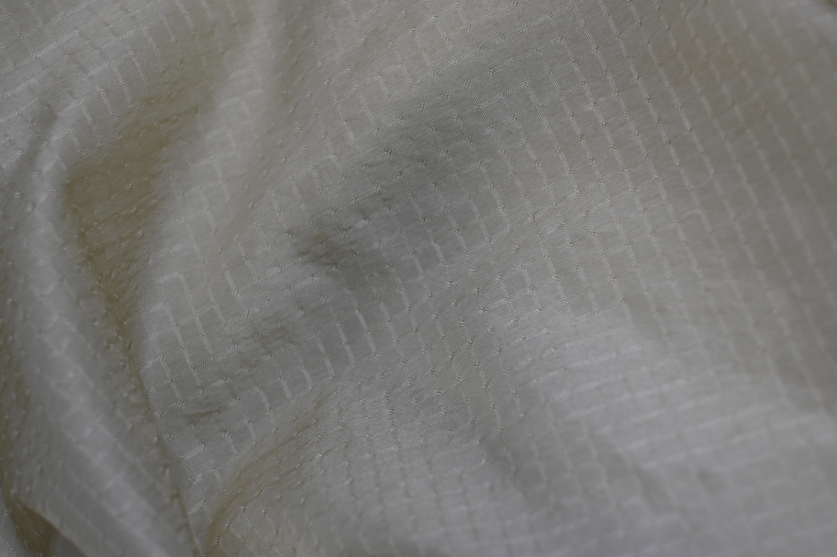 面料属性:100% 尼龙材质,品名 “15D 有光尼龙 0.3 三线格子”,克重 27GSM,是兼具时尚感与轻量化的创新面料。