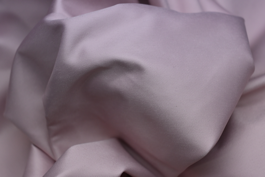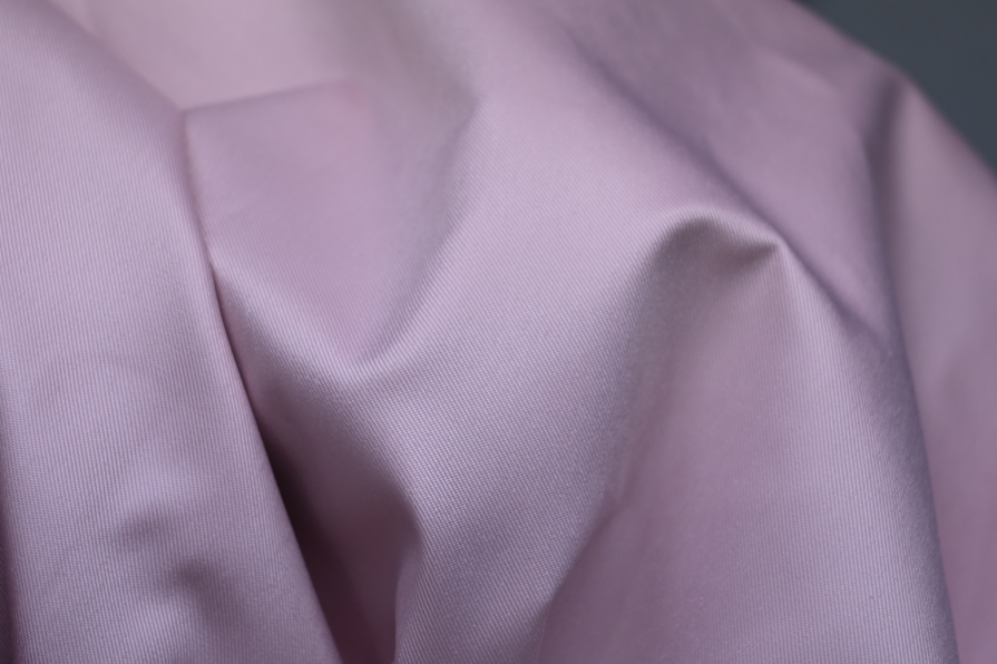 视觉表现:布面光泽度较好,呈现柔和雅致的色调(如浅紫色),纹理细腻平整,垂坠感优异,视觉上尽显优雅大气的风格。